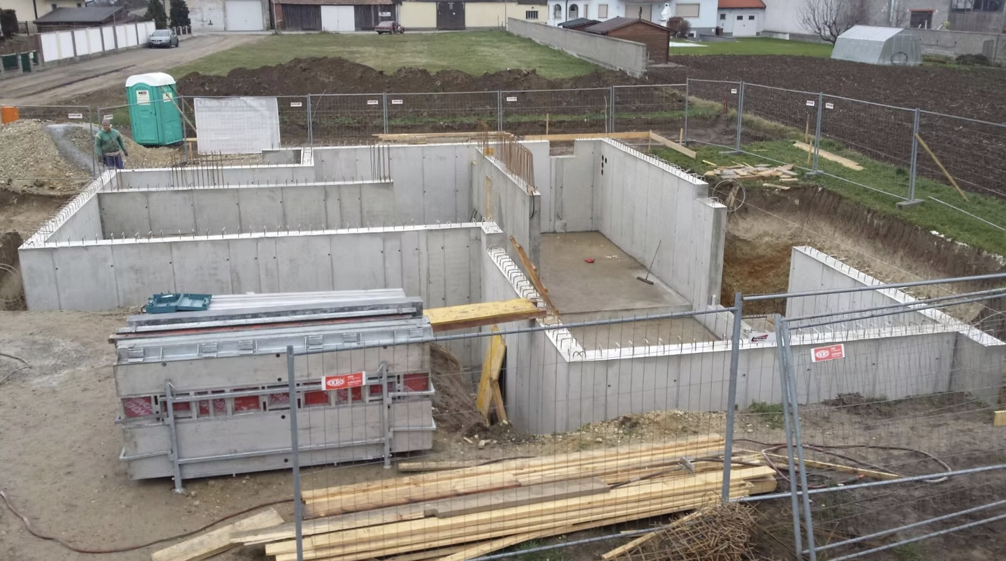 2. Fundamentarbeiten: Herstellung des Fundaments oder Kellers.